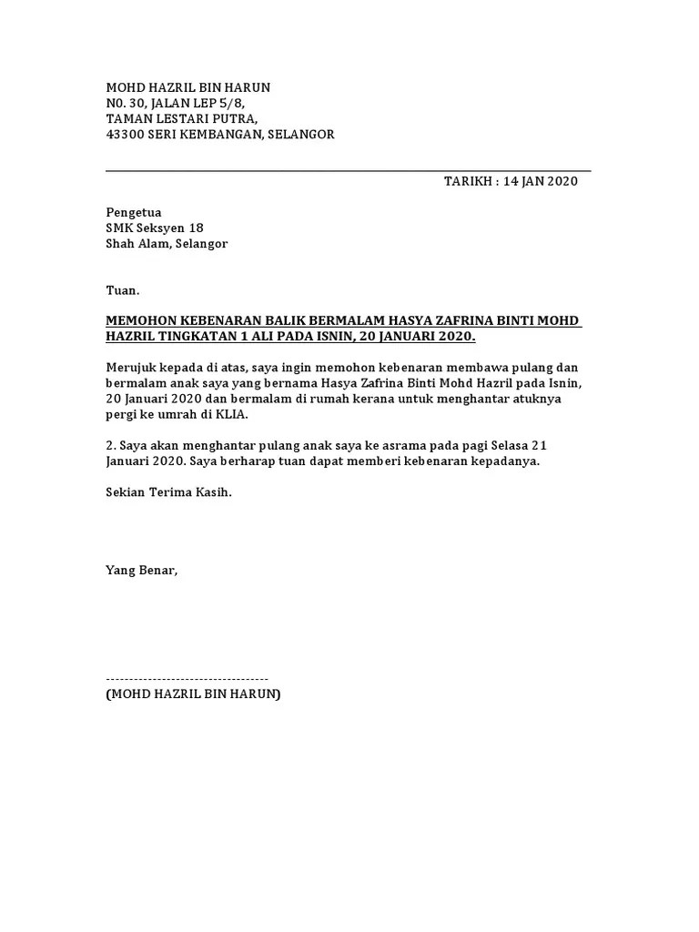 Saya nik mahadi bin nik hassan (nric: Contoh surat rasmi memohon kebenaran, contoh surat rasmi memohon cuti,. Tuan, memohon kebenaran untuk pulang lewat ke asrama. Surat pulang bermalam via www.scribd.com. Surat kebenaran pulang bermalam, contoh surat rasmi kebenaran,. Ipg kampus bahasa antarabangsa, lembah pantai, 59200 kuala lumpur.